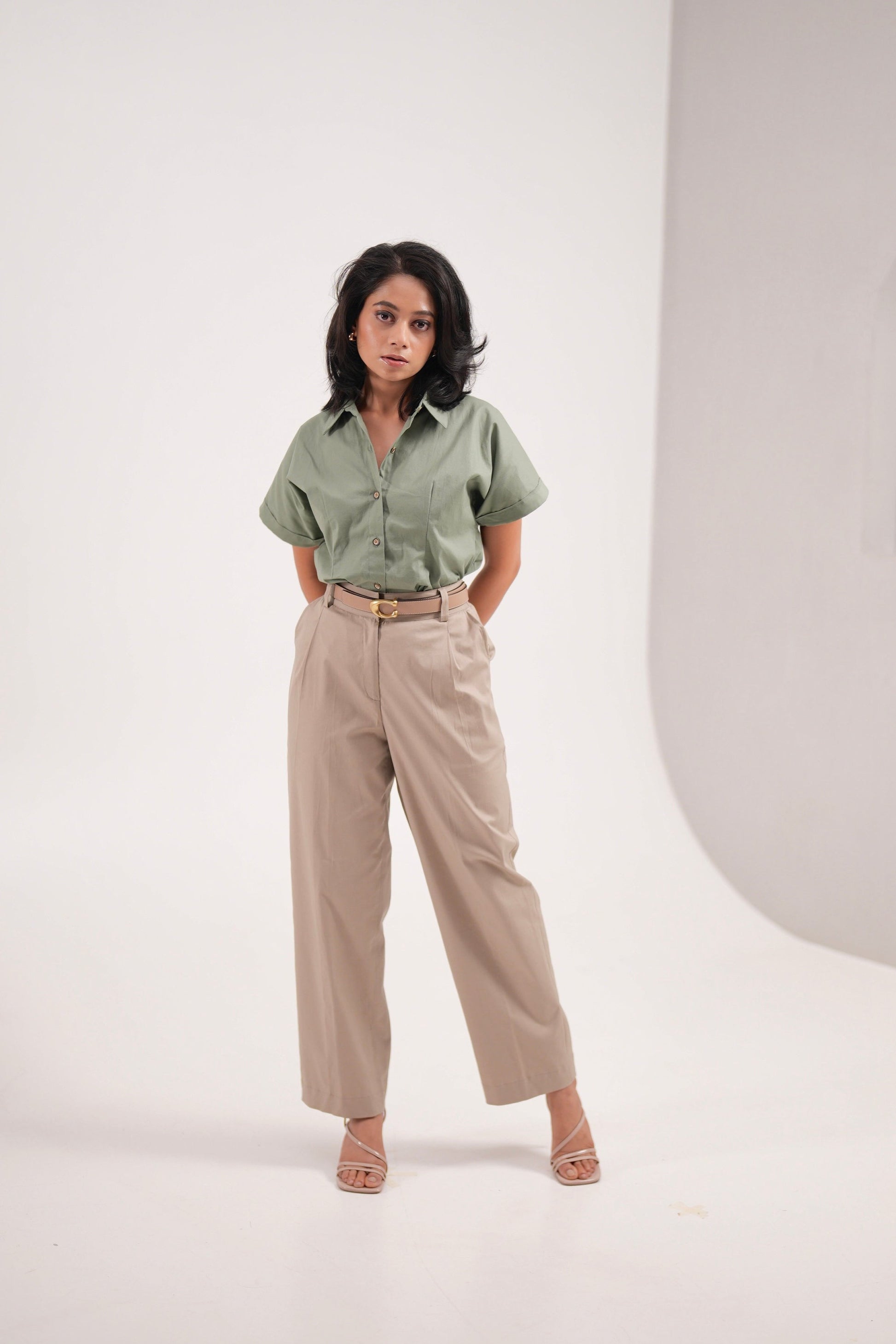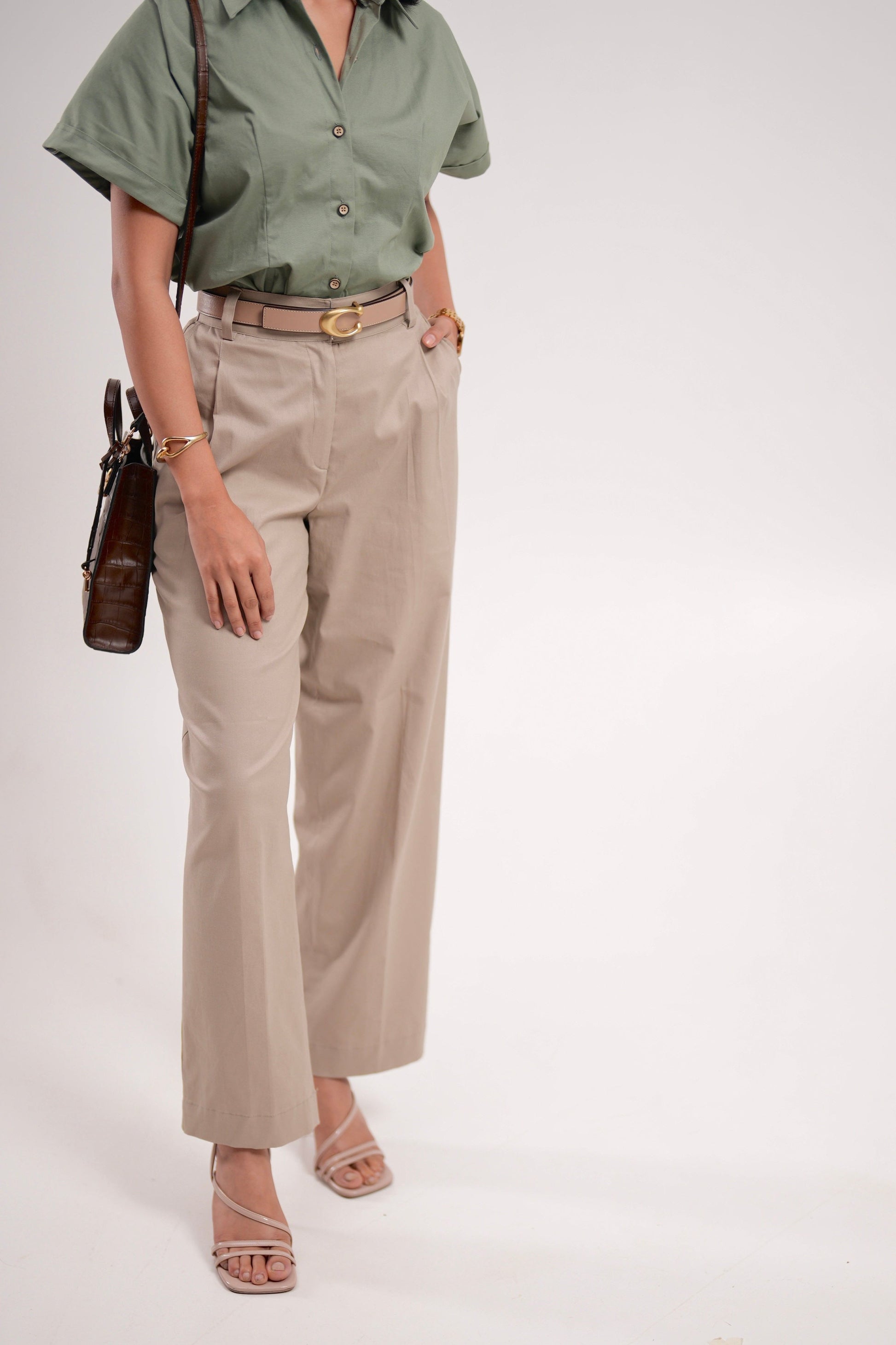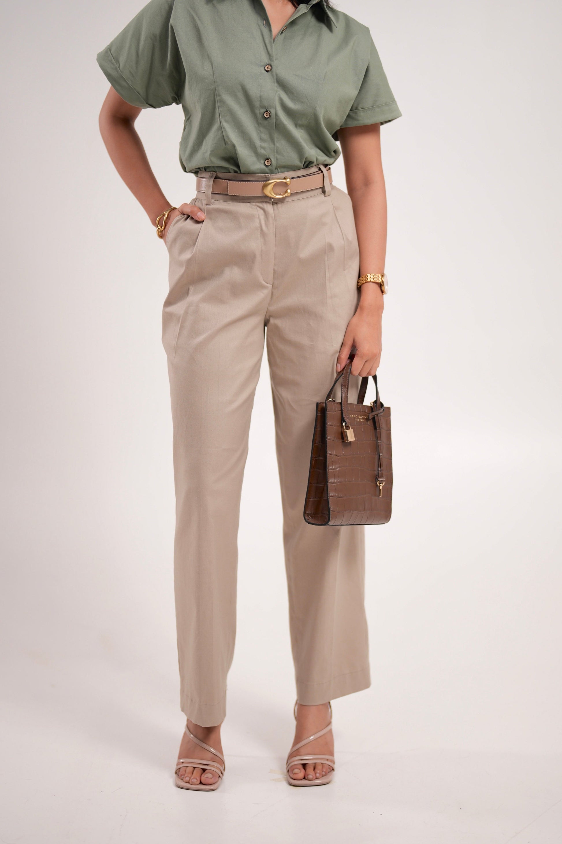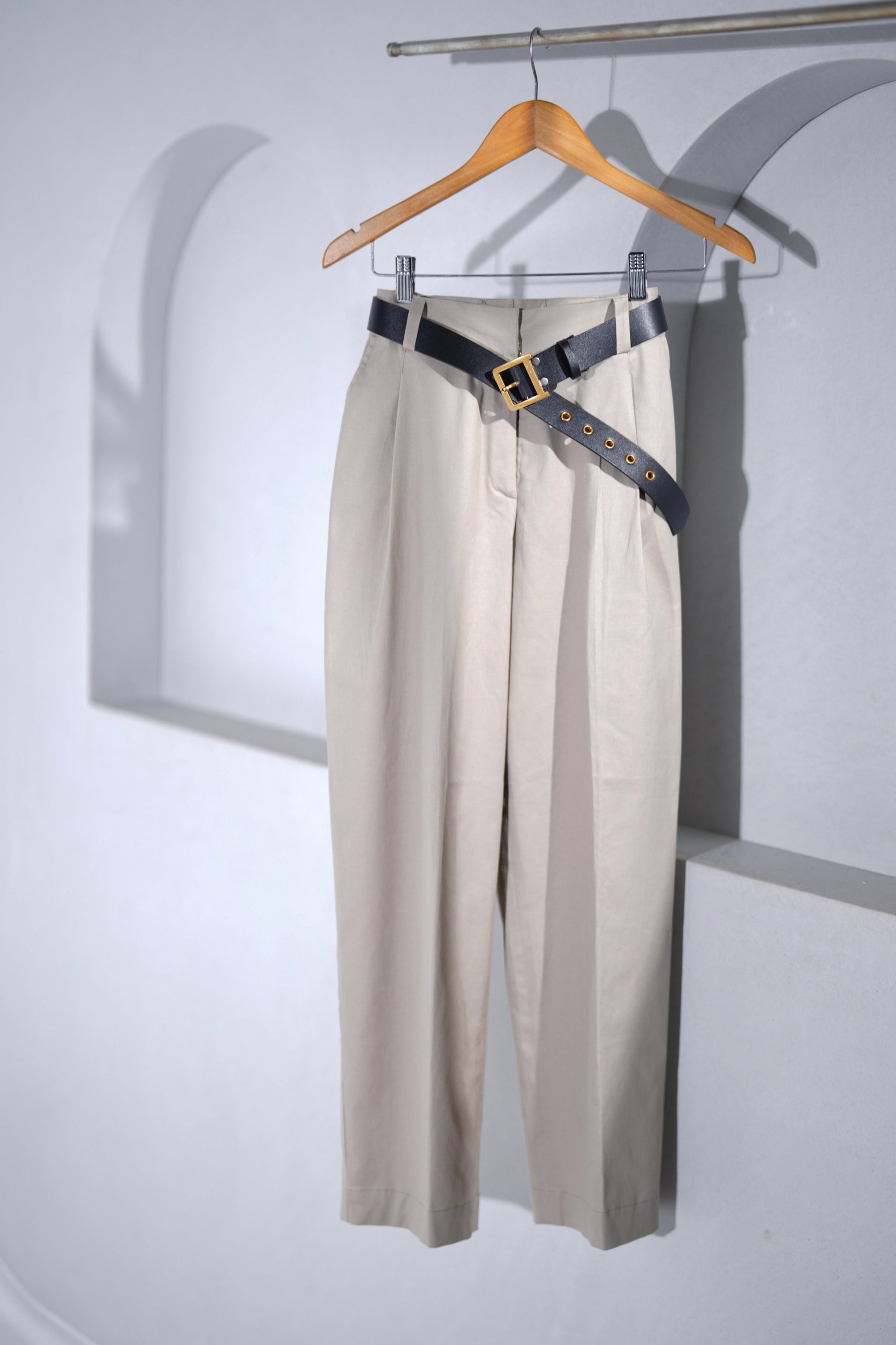 Beige Pleated Trousers