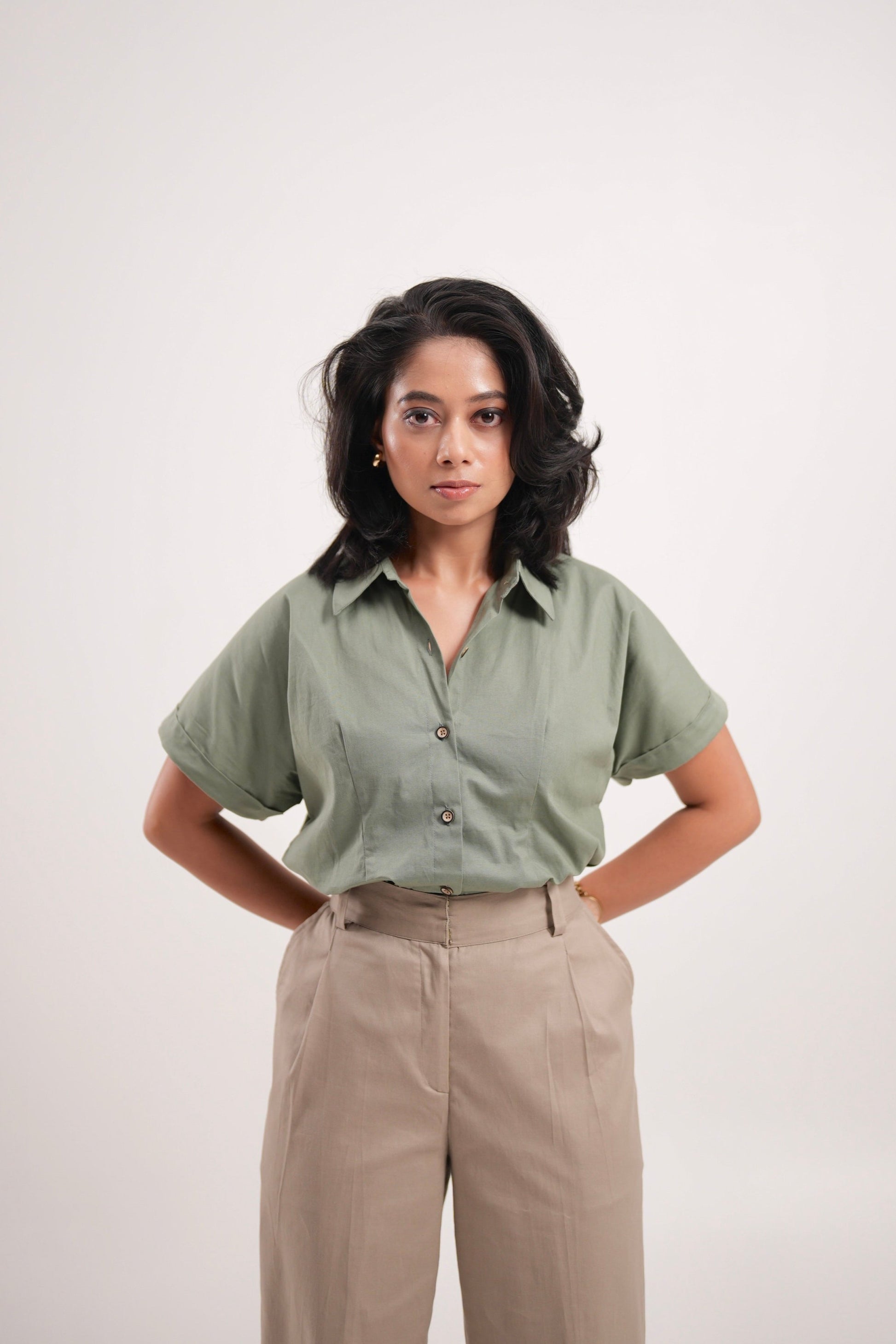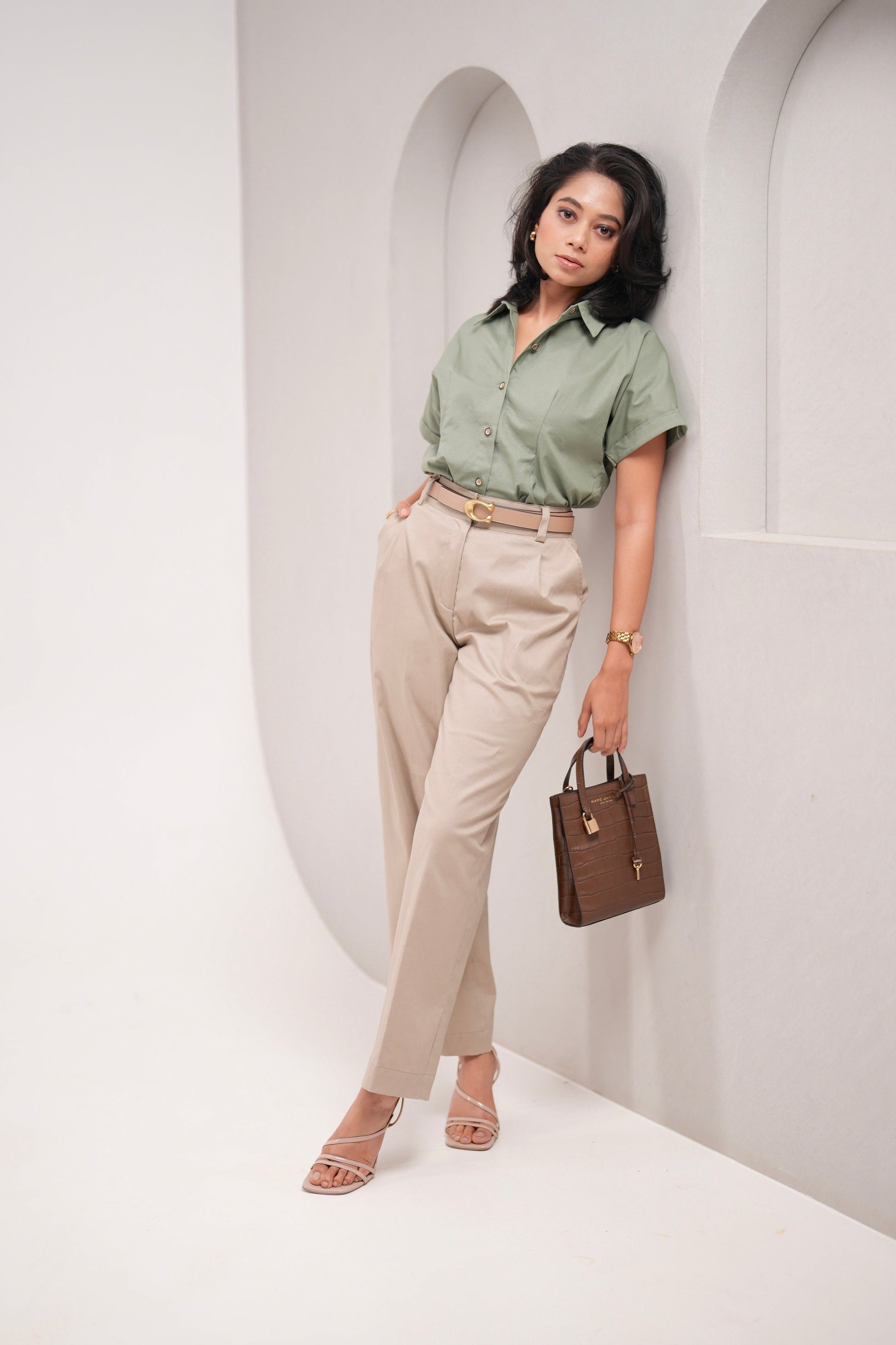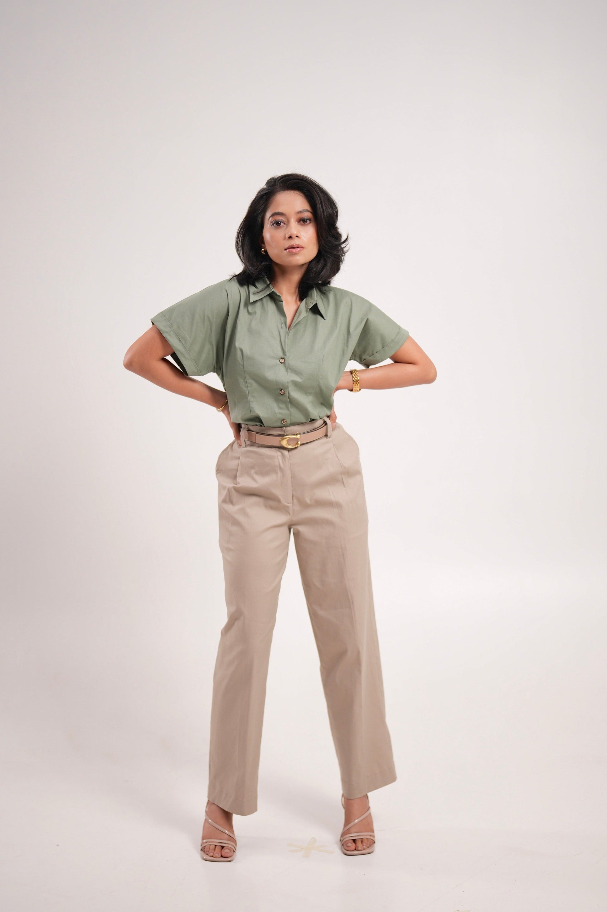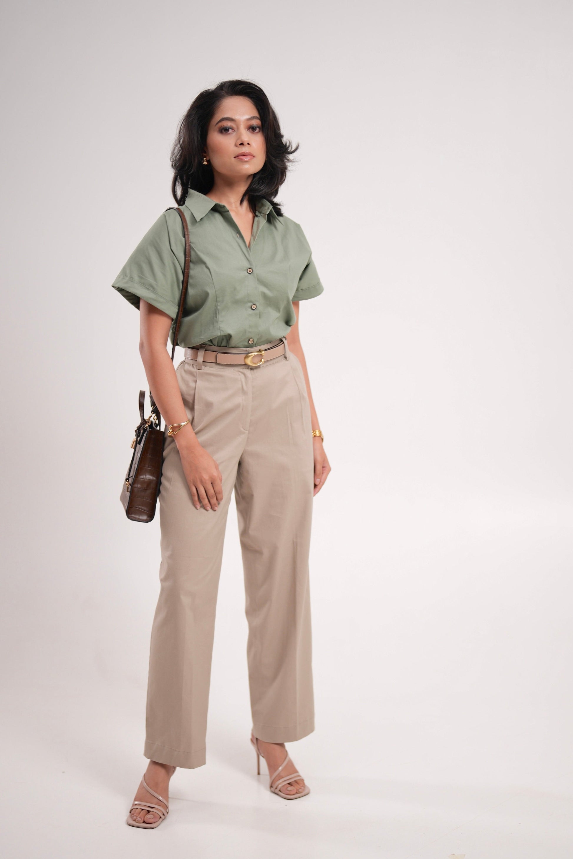 Beige Pleated Trousers