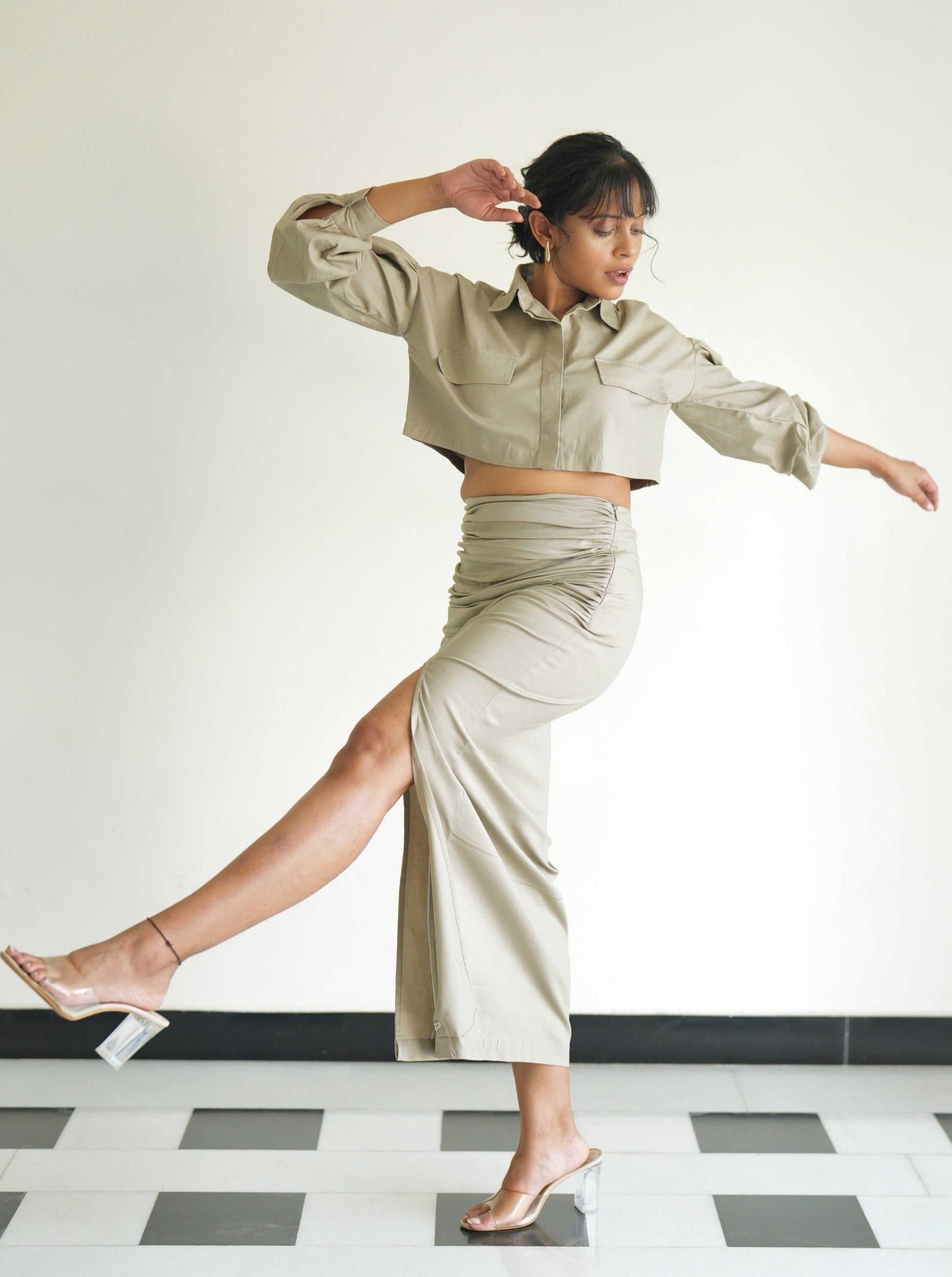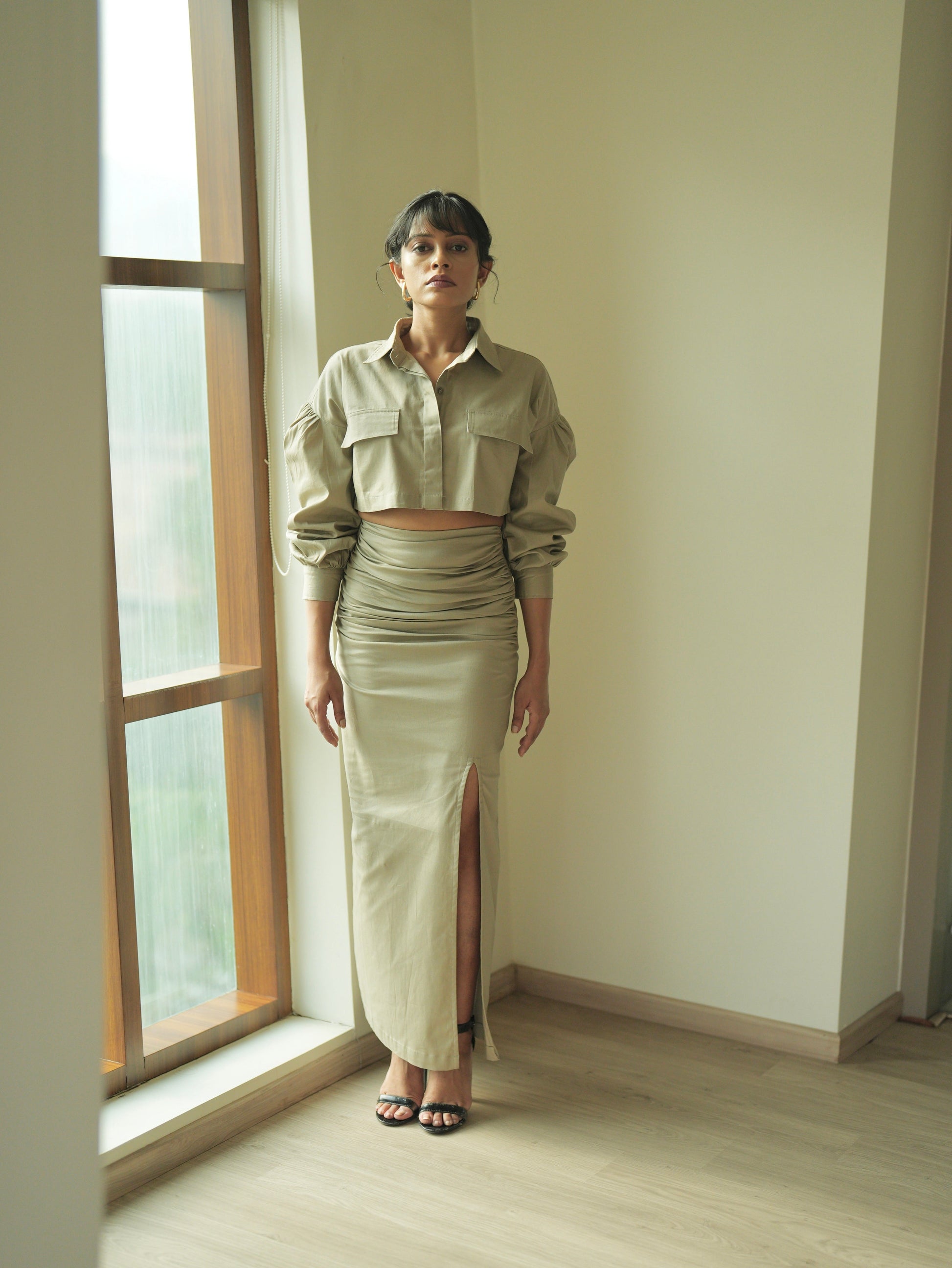 Shroom Wrinkled Slit Skirt