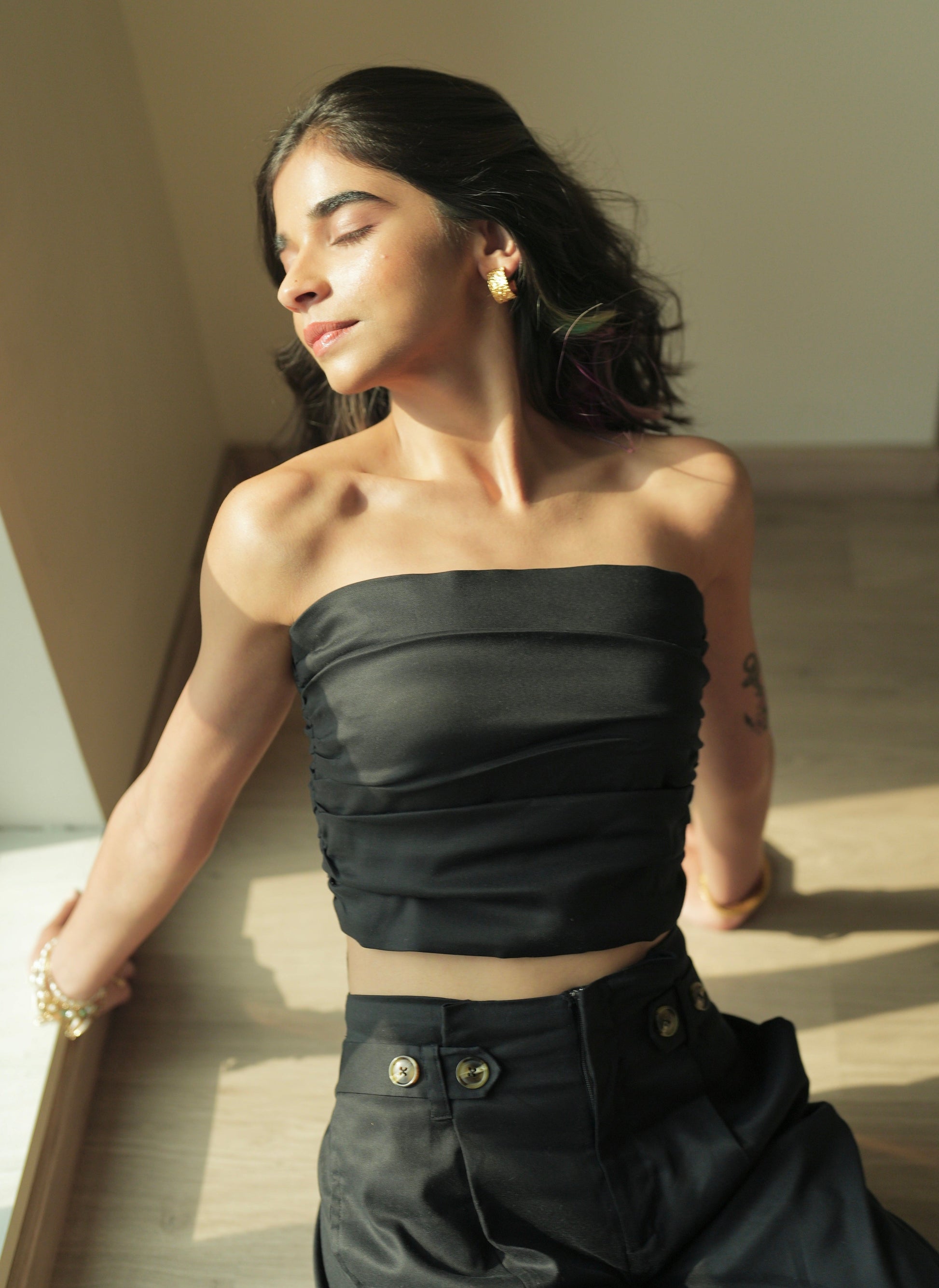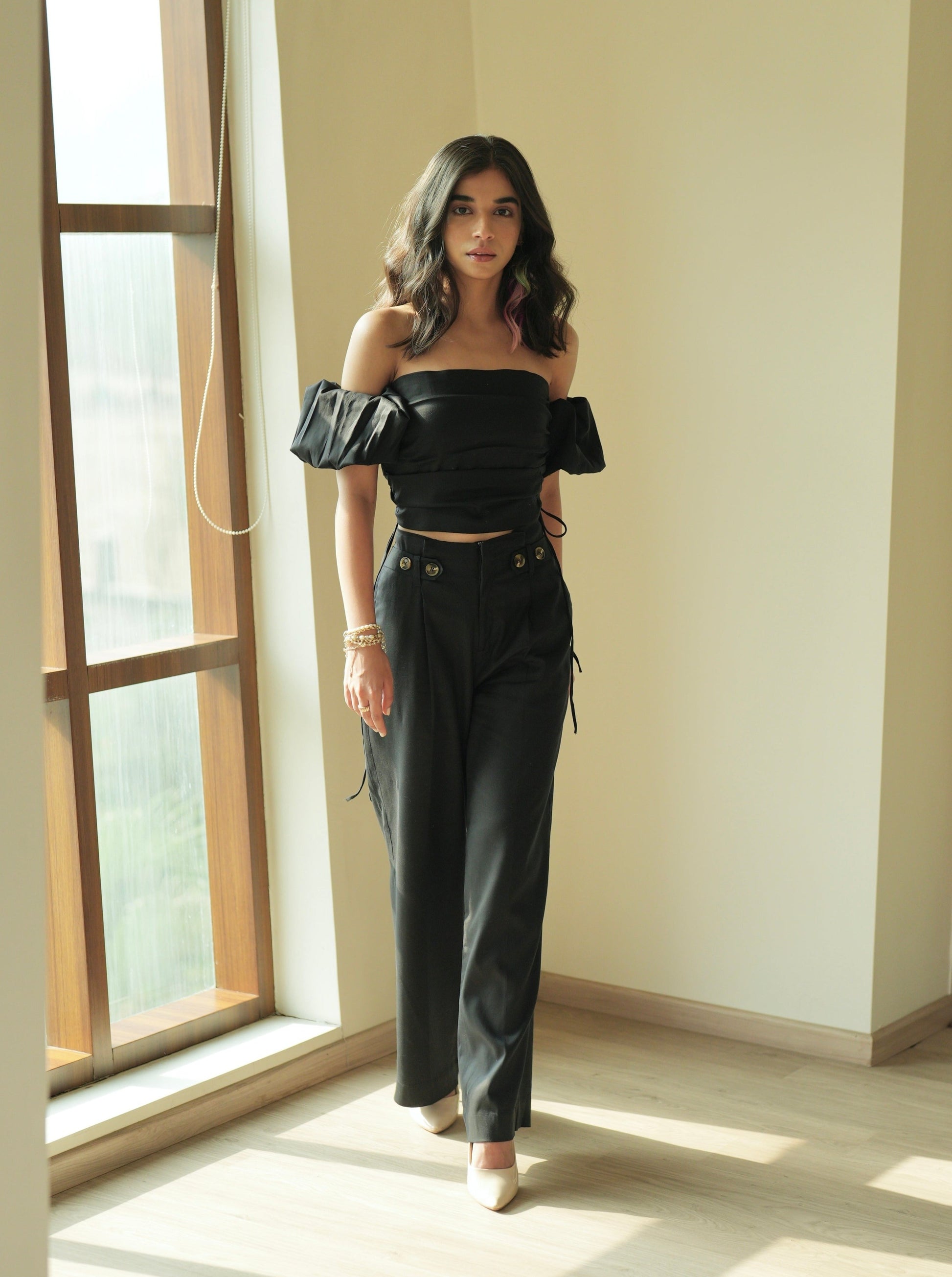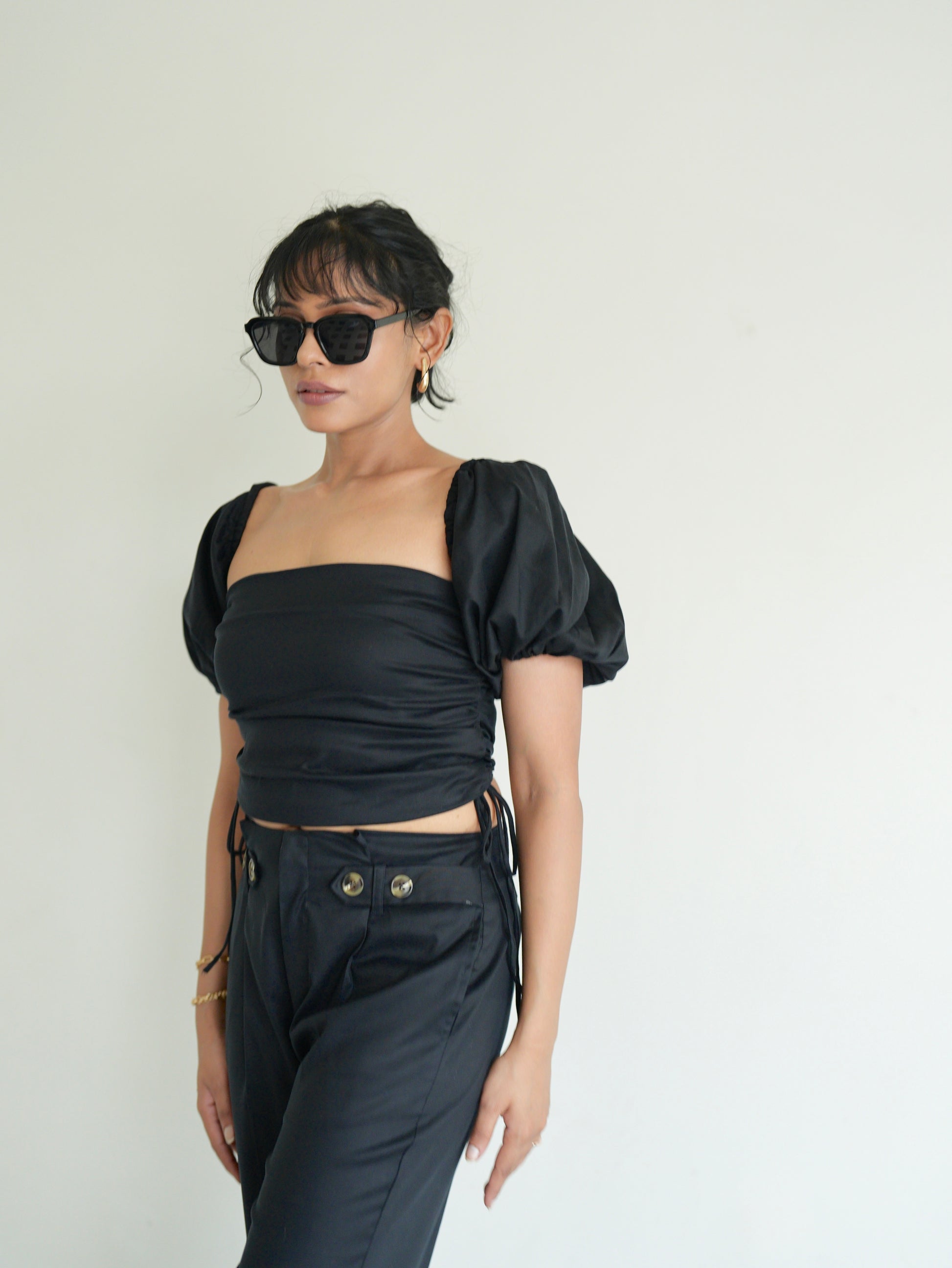 Pair it up with our Noir Pleated Parallels or the Olivia Pleated Mini Skirt for a bold and edgy ensemble.