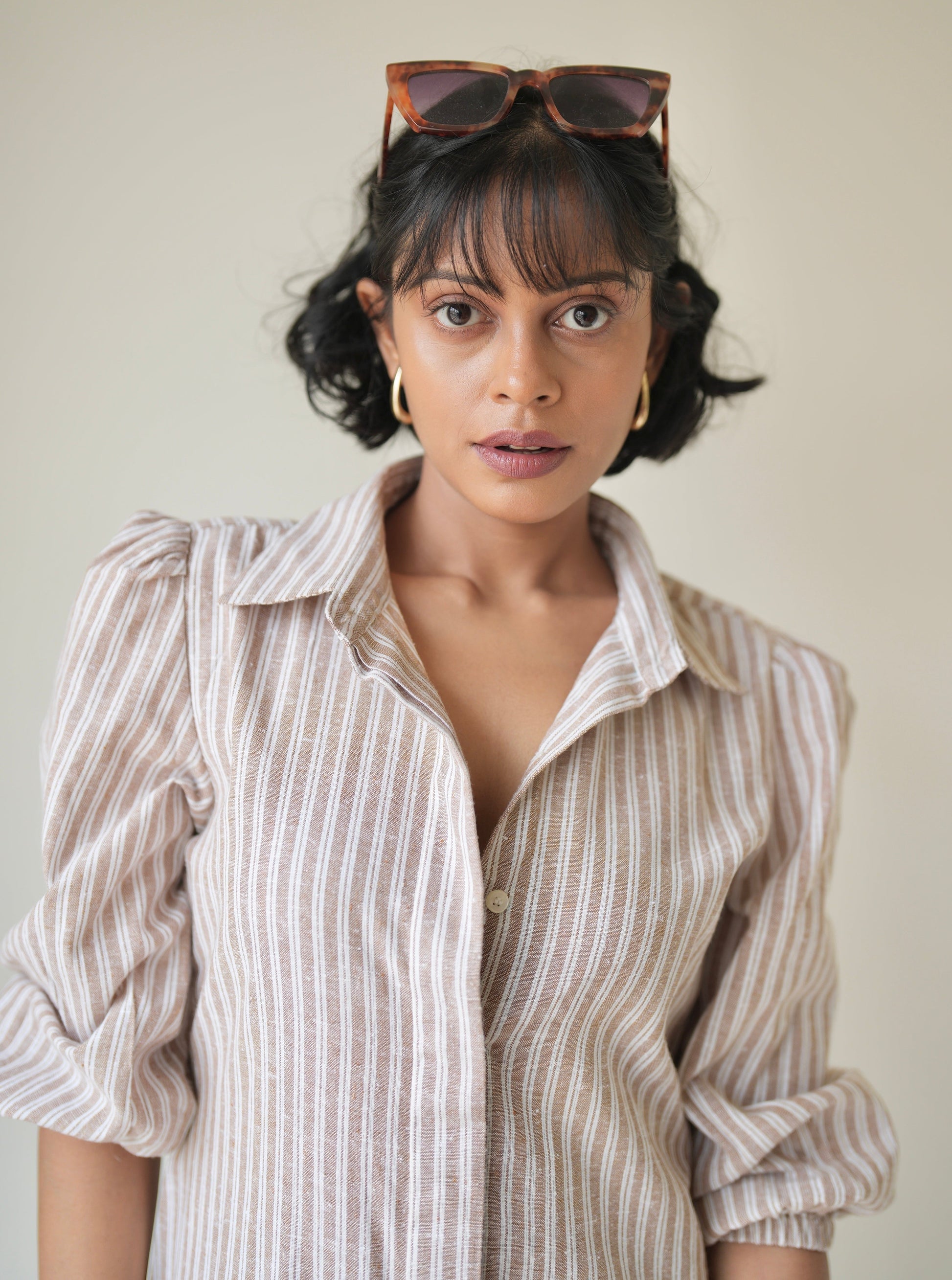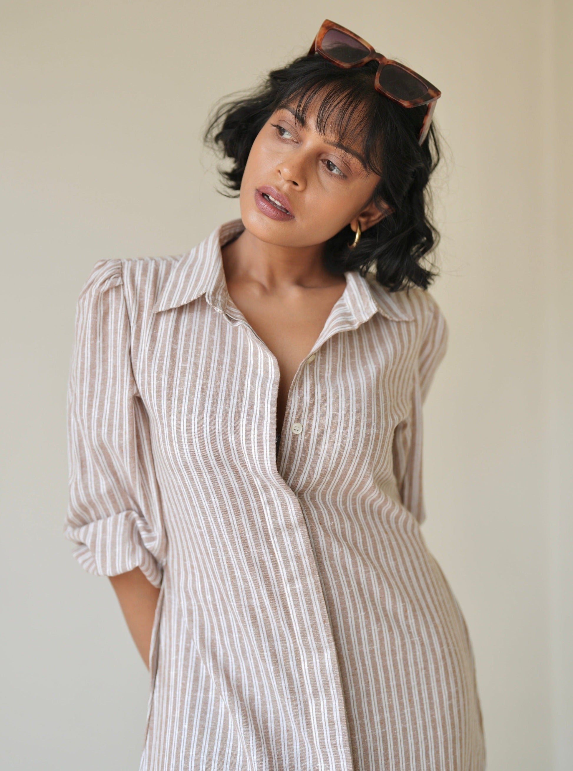 Sand Striped Shirt Dress