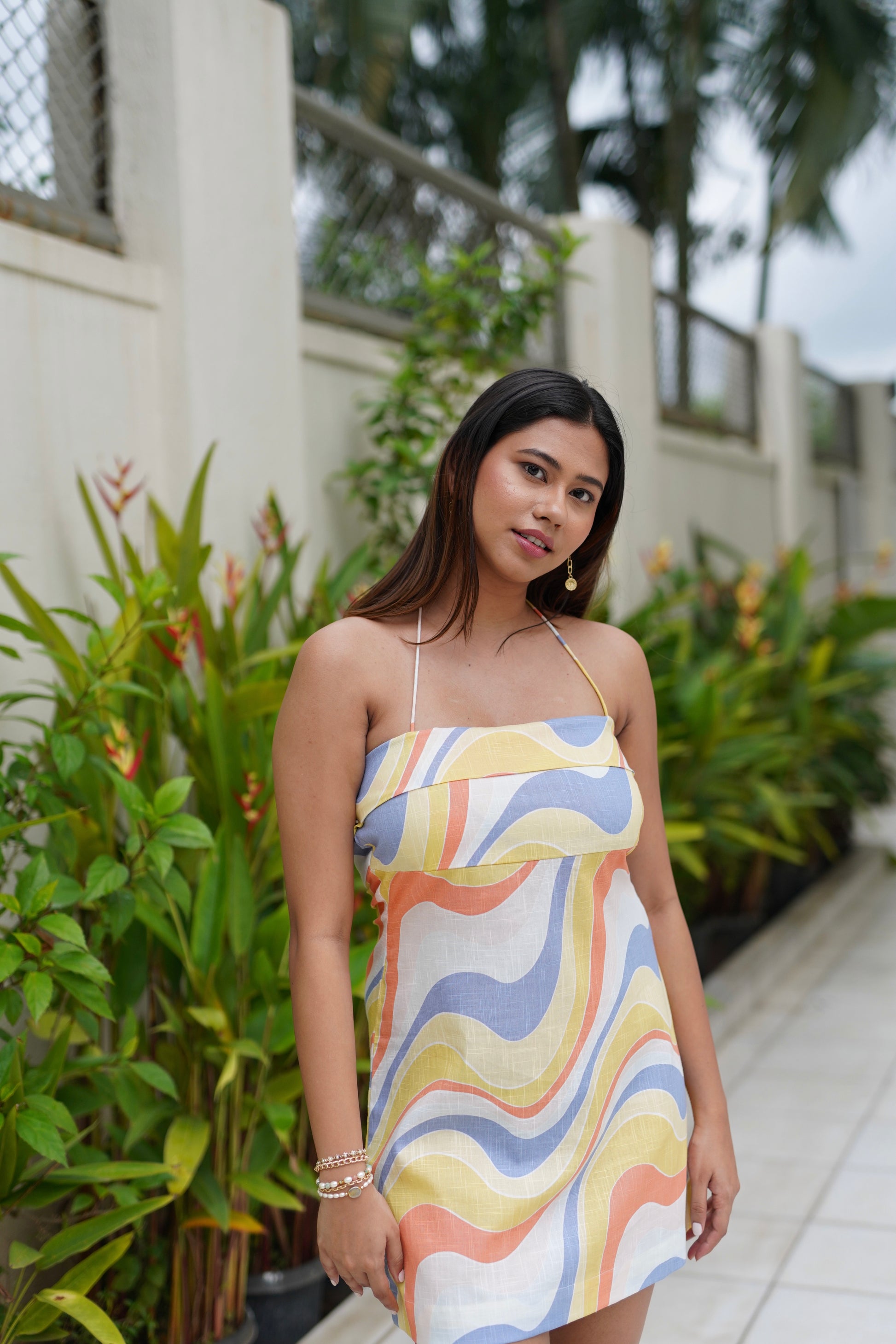 Crafted in a linen blend, Our Wavy Dress features a short yoke and a centre back zip with a splash of pleasant colours all over. It also offers a halter neck tie-up detailing that can be tucked in or tied out to suit your style.
